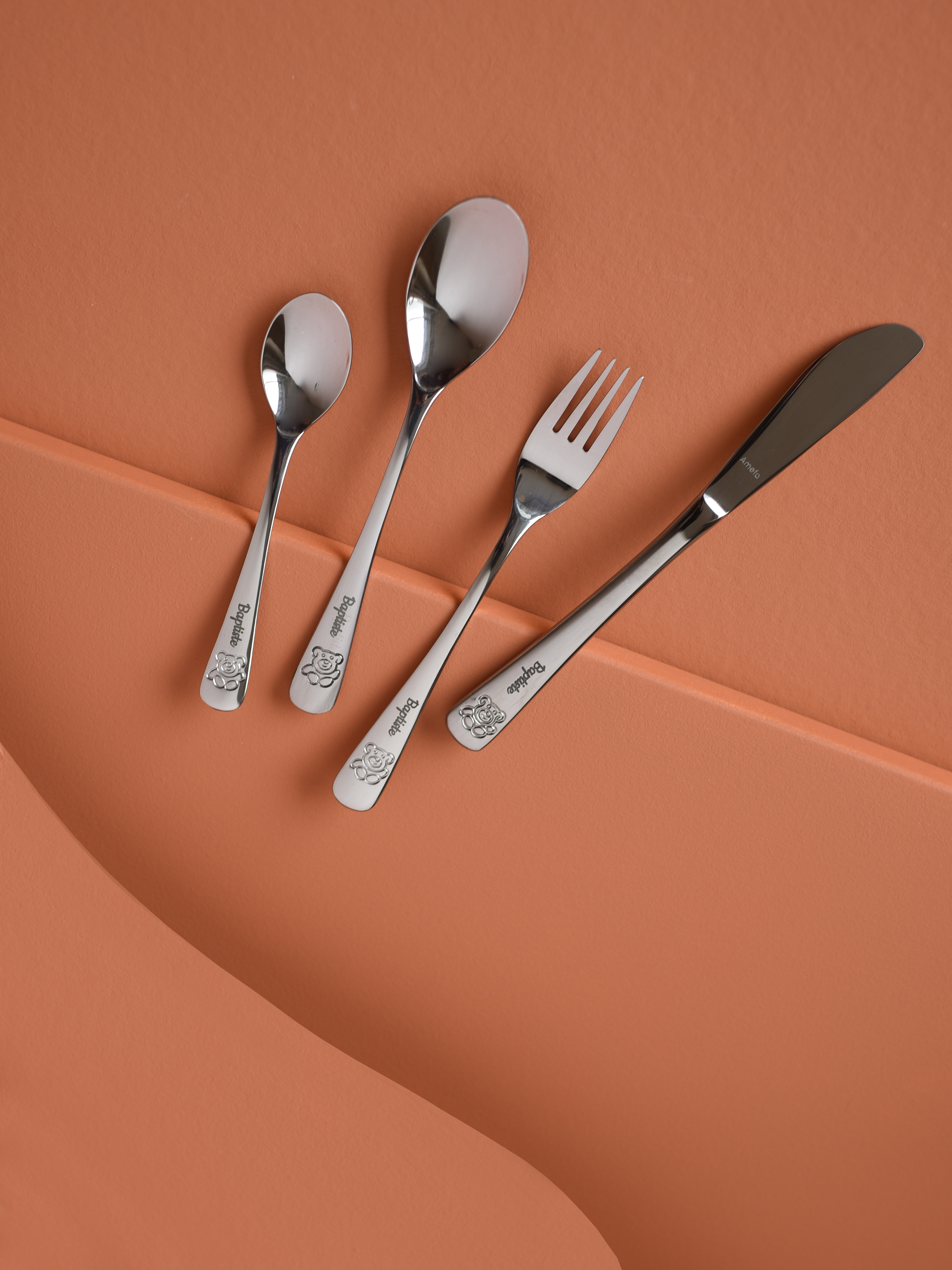 Les enfants aiment imiter les adultes. Avoir leurs "propres" couverts, gravés comme ceux de papa ou maman, encourage l’autonomie à table. C’est un petit pas vers les grandes personnes… avec, toujours, un œil sur la compote.