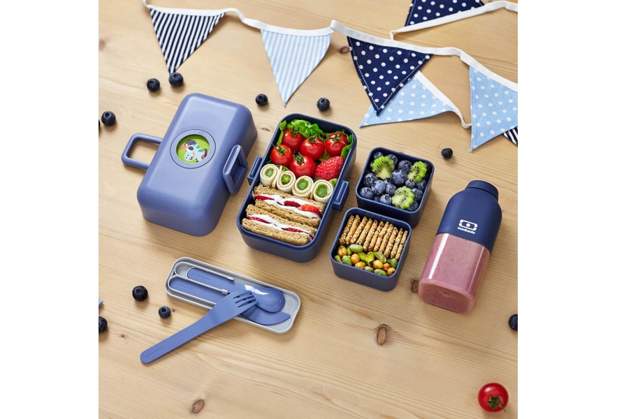 Découvrez la MB Trésor bleu Infinity, la lunch box Monbento spécialement conçue pour les enfants actifs et gourmands. Parfaite pour l'école, la salle de jeux et le plein air, cette boîte repas robuste et amusante protège le contenu des folles aventures des petits. Idéale pour apprendre aux enfants les bienfaits d’une alimentation saine, elle est conçue comme un véritable coffre précieux renfermant des mets délicieux. La MB Trésor bleu Infinity comprend un récipient principal de 500 ml, compatible avec le micro-ondes (sans couvercle), ainsi que deux petites caissettes de 150 ml chacune, idéales pour le dessert, l'entrée ou un encas équilibré. Son couvercle supérieur innovant est personnalisable grâce aux 4 vignettes incluses, permettant à chaque enfant d'afficher ses préférences et de rendre sa lunch box unique. Adoptez la MB Trésor bleu Infinity pour offrir à votre enfant un compagnon de repas ludique, fonctionnel et design, qui l'accompagnera partout avec style.