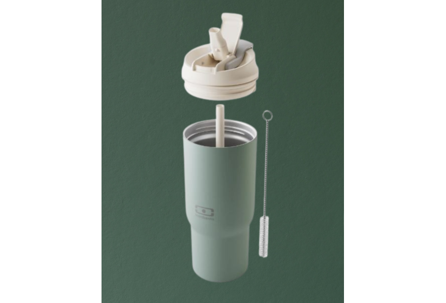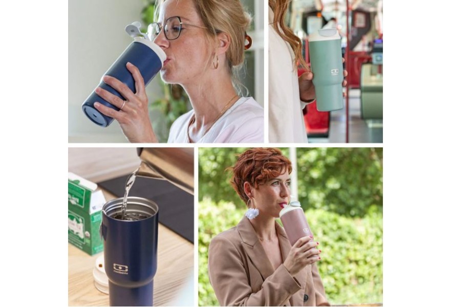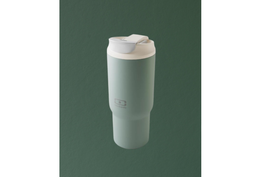 Travel Mug L Vert Natural de chez Monbento : gardez vos boissons chaudes ou froides partout avec style et praticité, personnalisable au laser.